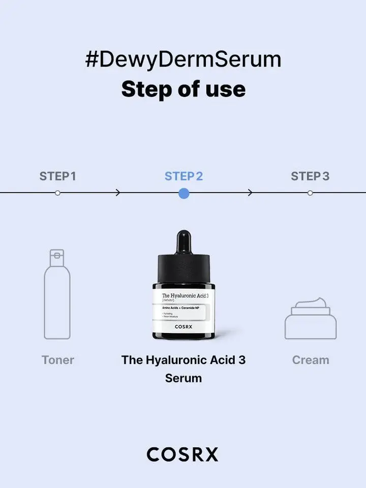 Sérum hautement concentré à 3% d'acide hyaluronique qui hydrate, repulpe, apaise et soutient la barrière d'hydratation de la peau.